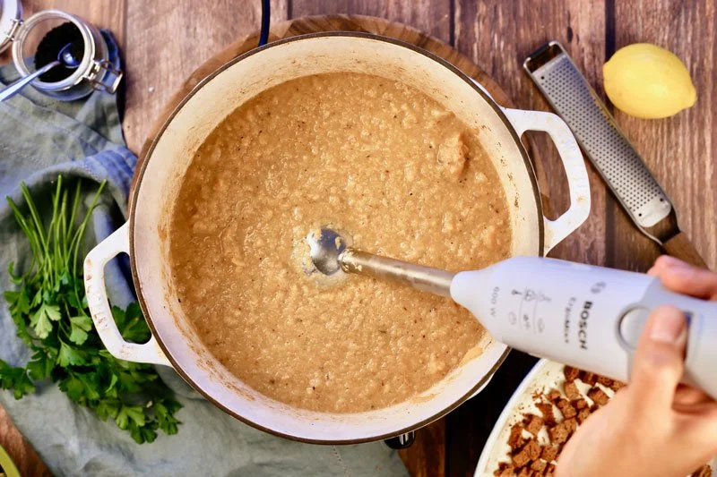 - Blend the soup using an immersion blender (or a high-speed blender) and see if you would prefer to add a bit more milk until it reaches the desired consistency.