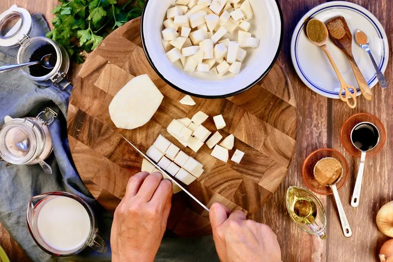 - 1 medium-sized celeriac (also known as celery root), cut into half-inch cubes